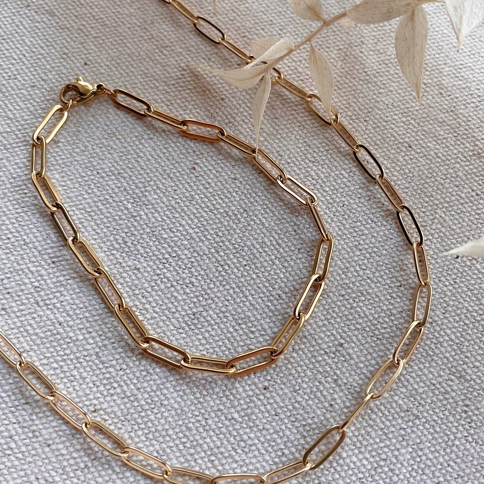 18k Gold Plated Long Link Chain Bracelet - Waterproof