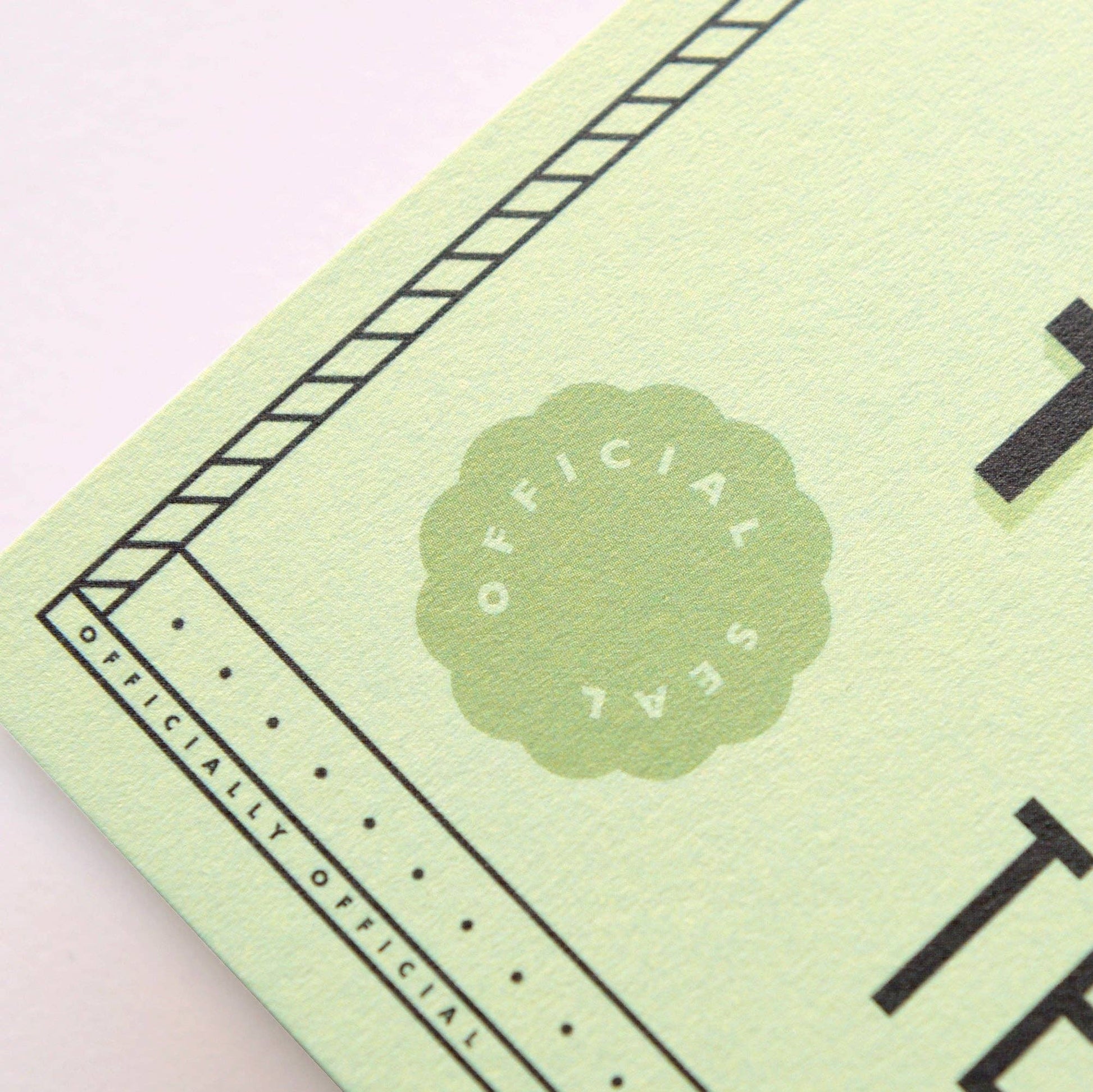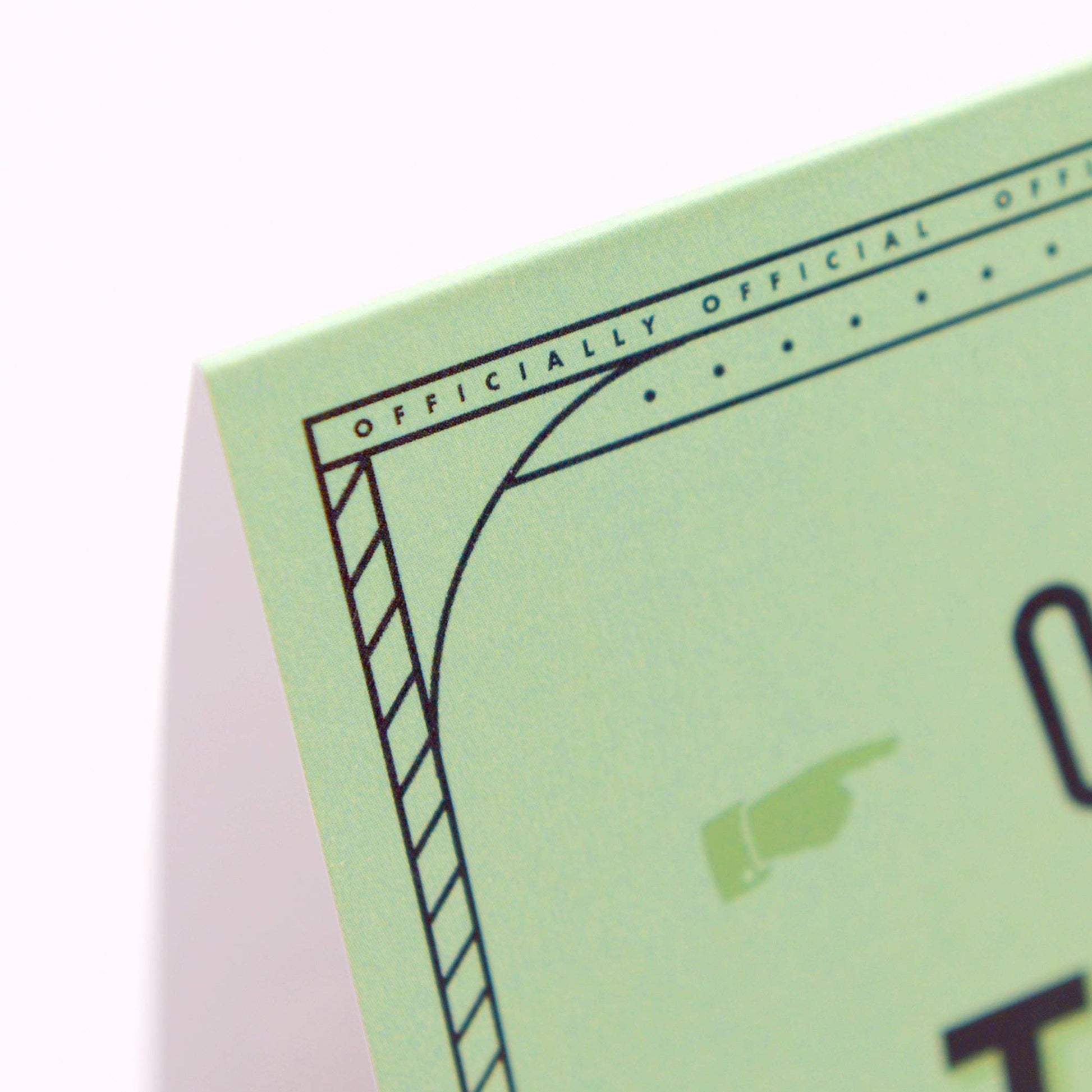 Printed in gorgeous greens, complete with 'official stamp' and 'official seal'. Supplied with a recycled kraft envelope.