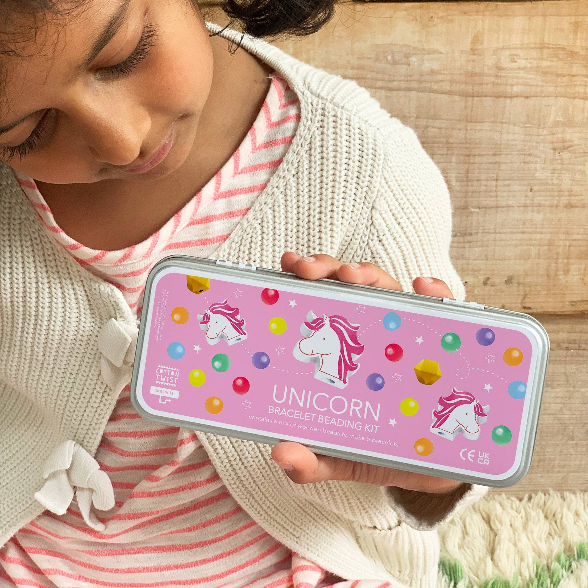 Containing enough beads to make 5 bracelets, a selection of unicorn, geometric & spherical beads await. The elastic comes with metal ends to aid the beading process for young children.